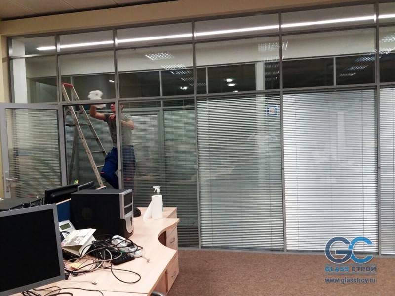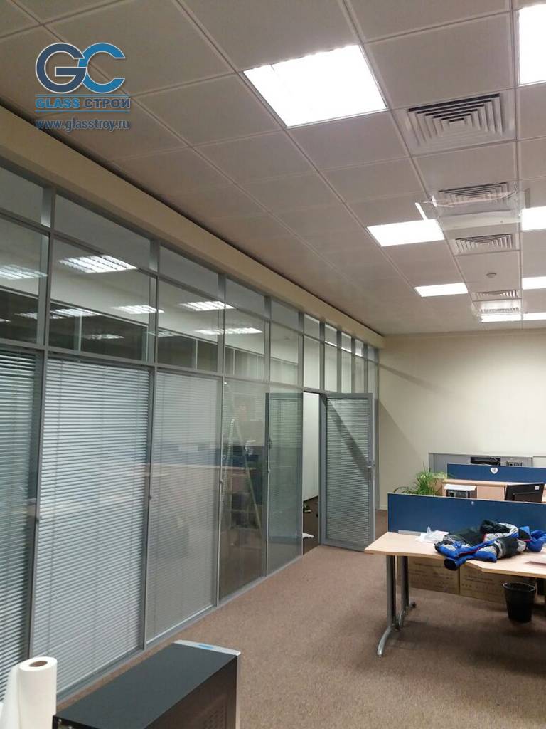 В назначенный срок на объект прибыла бригада монтажников со всеми комплектующими и контейнером с нарезанным стеклом. Сам монтаж занял несколько дней и в указанный срок красиво оформленное офисное помещение, было предъявлено заказчику. Приемная комиссия отметила высокое качество работ, в результате которых появилось удобное современное офисное помещение.
