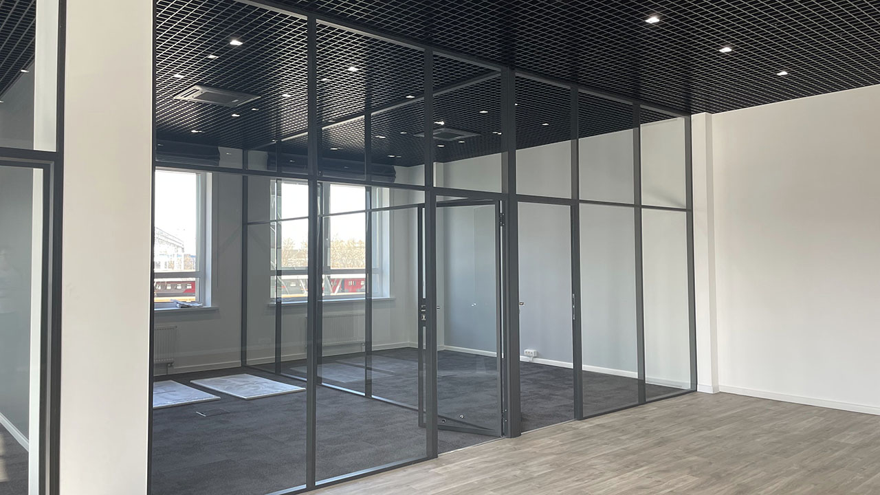 - «Сочетание прозрачного стекла с черным металлопрофилем является актуальным для популярного стиля loft», - рассказывает Елена Борздова, менеджер проекта. – «Это же сочетание делает интерьер статусным даже при минимальной обстановке кабинетов, холлов. За счет наличия каркаса позволяет сэкономить на толщине стекла. Поэтому, часто привлекает внимание клиентов «Гласстроя». Что касается сложности исполнения, важным условием данного заказа была предварительная подготовка монтажных поверхностей. Клиент своими силами подготовил четыре достаточно широкие проема для установки каркасных перегородок. Менее, чем за неделю, получил в пользование готовые конструкции».