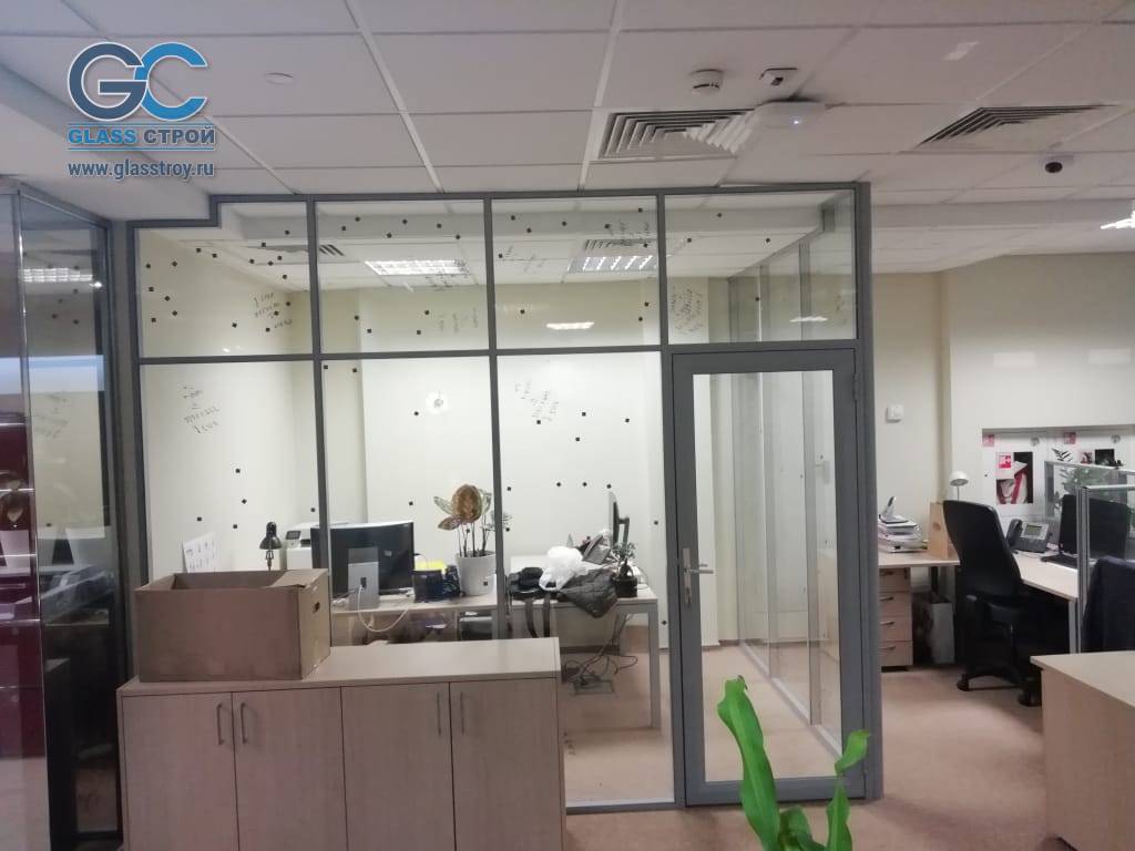 - установить металлокаркасные перегородки высотой в 2,75 м со стеклянным заполнением в 5 мм;
