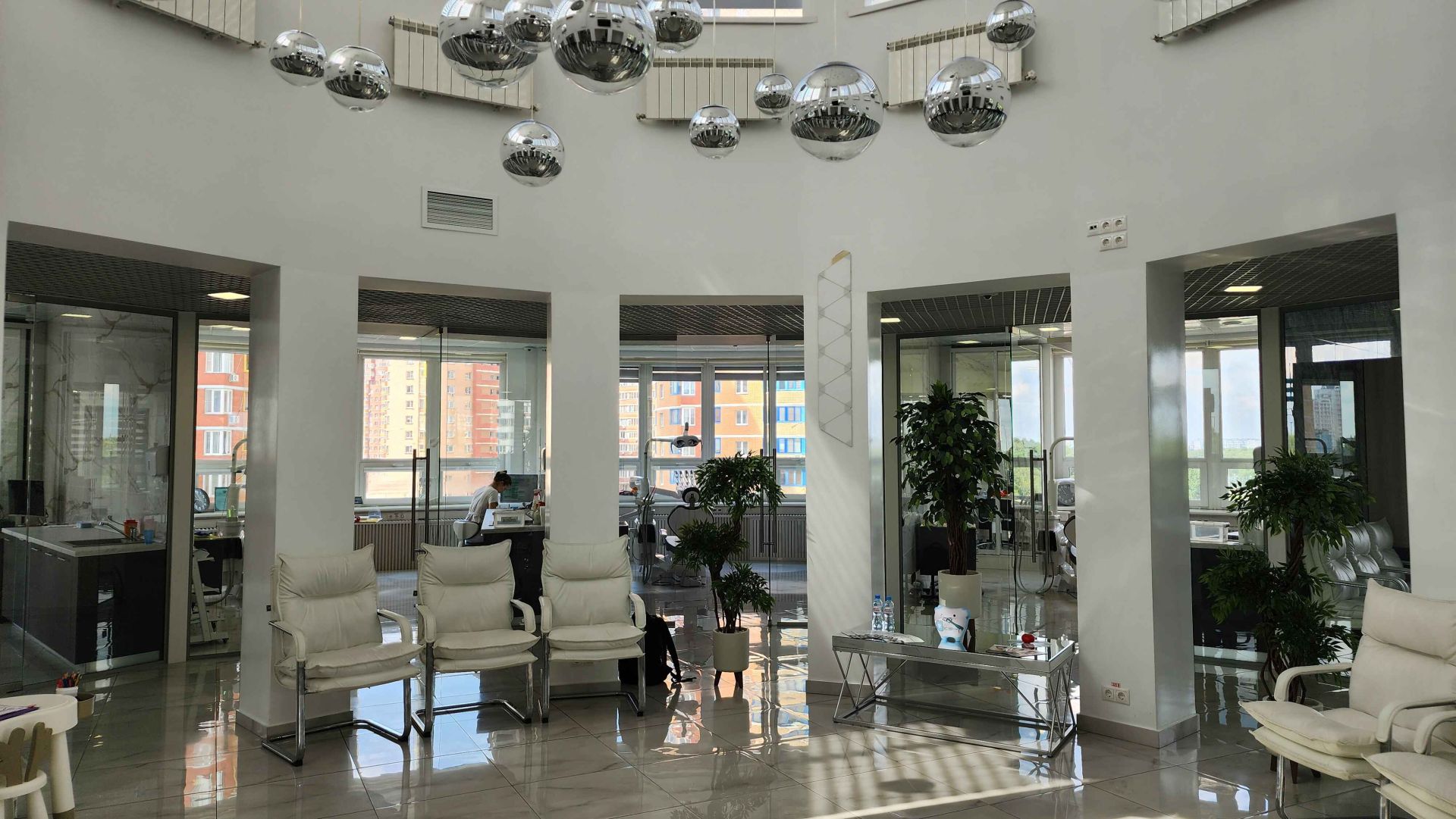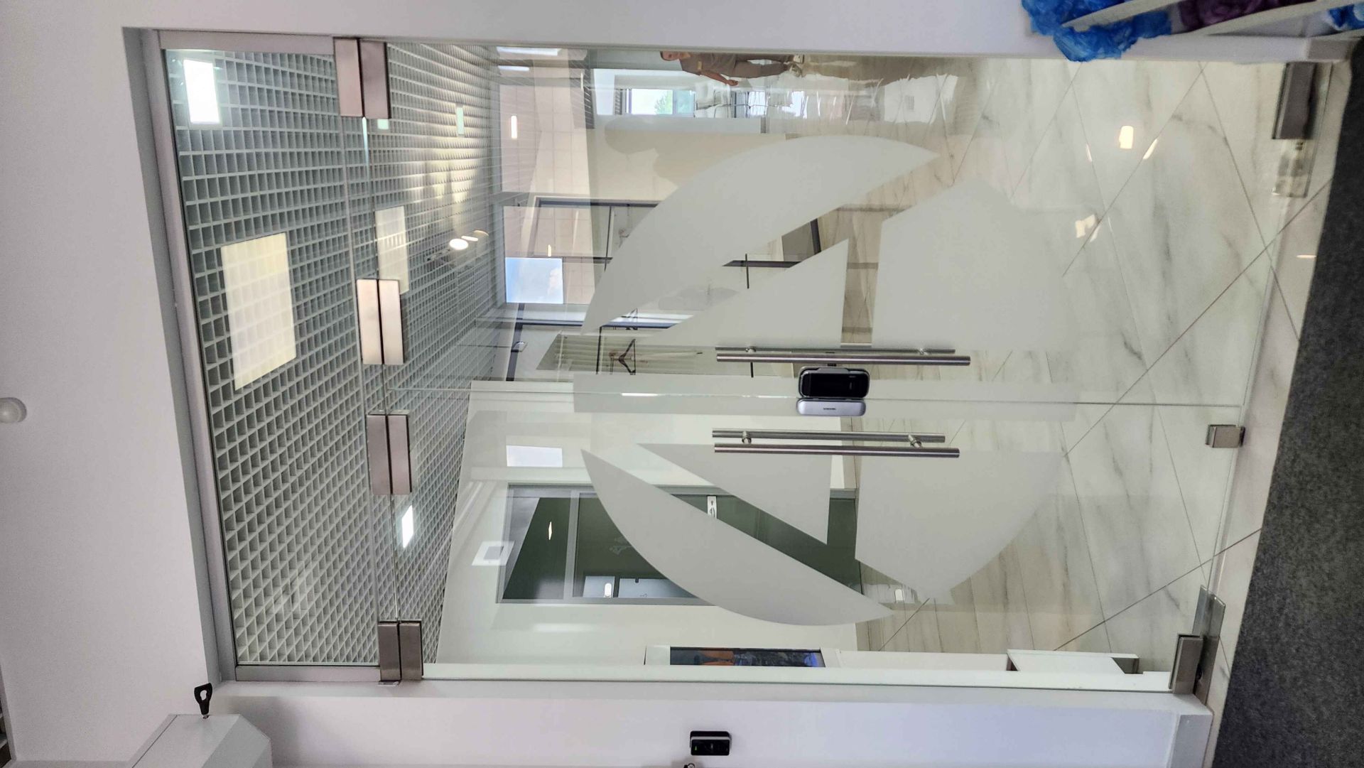 Тихий акцент в стекле на Октябрьской 33 в Балашихе. Внутри стоматологической клиники «Мирадент», появилось нечто, что почти не требует слов. Цельностеклянные маятниковые двери с двумя боковыми панелями — задача простая, на первый взгляд, но требовательная к точности и руке. Площадь — 52,38 м², стекло каленое, 10 мм, прозрачное. Без окраса, но с характером.