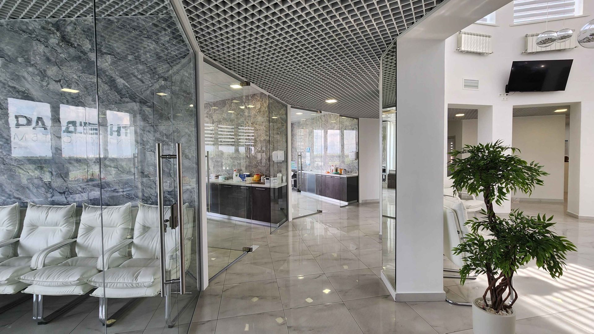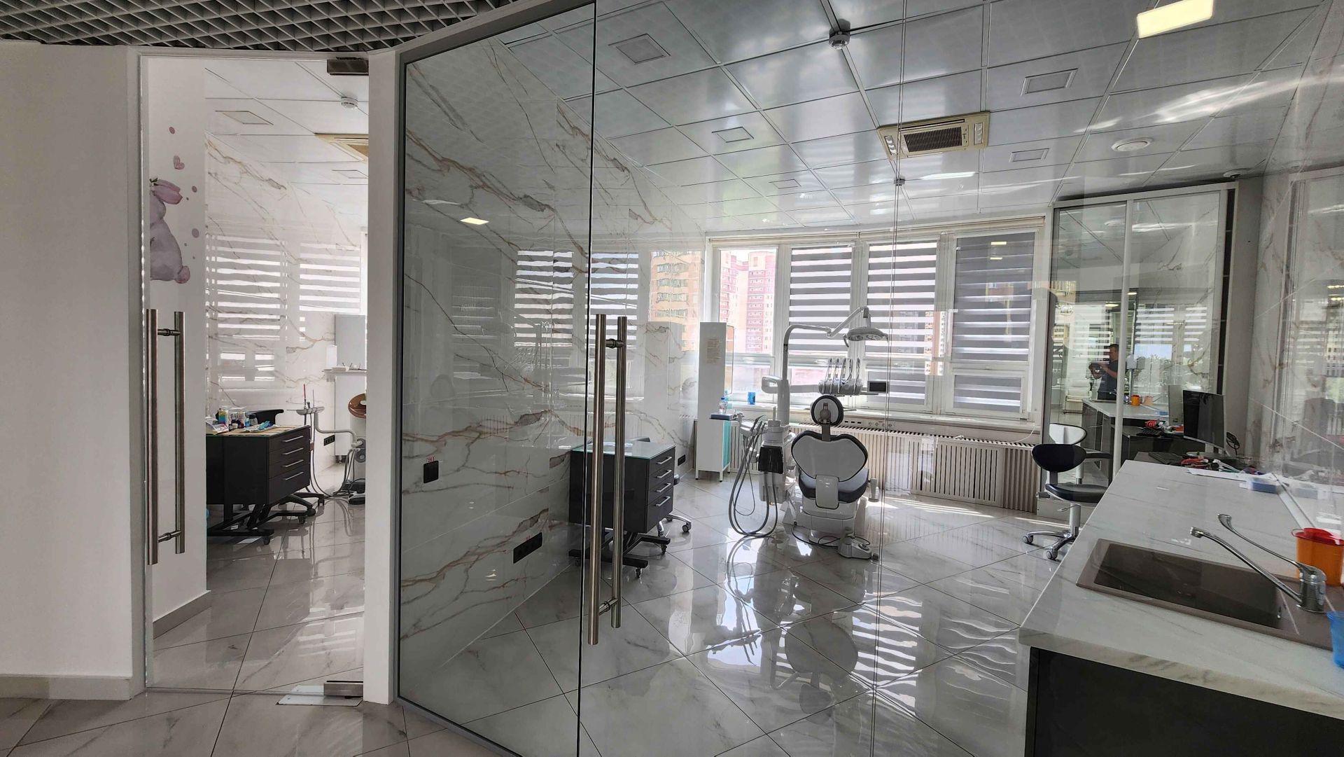 Конструкции такого типа — цельностеклянные, минималистичные, на первый взгляд почти незаметные — решают сразу несколько задач. Они зонируют пространство, не дробя его. Пропускают свет, не требуя света. Обеспечивают приватность — при желании можно нанести плёнку или узор, но не закрывают обзор полностью. Важнее другое: в медицинской среде, особенно в стоматологии, необходимо ощущение открытости и доверия. Стекло помогает его создать. Оно не давит, не шумит визуально, не усложняет интерьер. При этом оно прочное, безопасное, устойчивое к нагрузке и времени. Заказчик получает не просто перегородку или дверь, а инструмент, который одновременно работает на эстетику, гигиену и чёткость внутренней логики пространства.