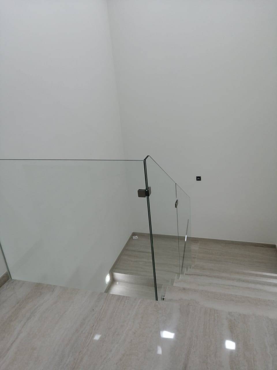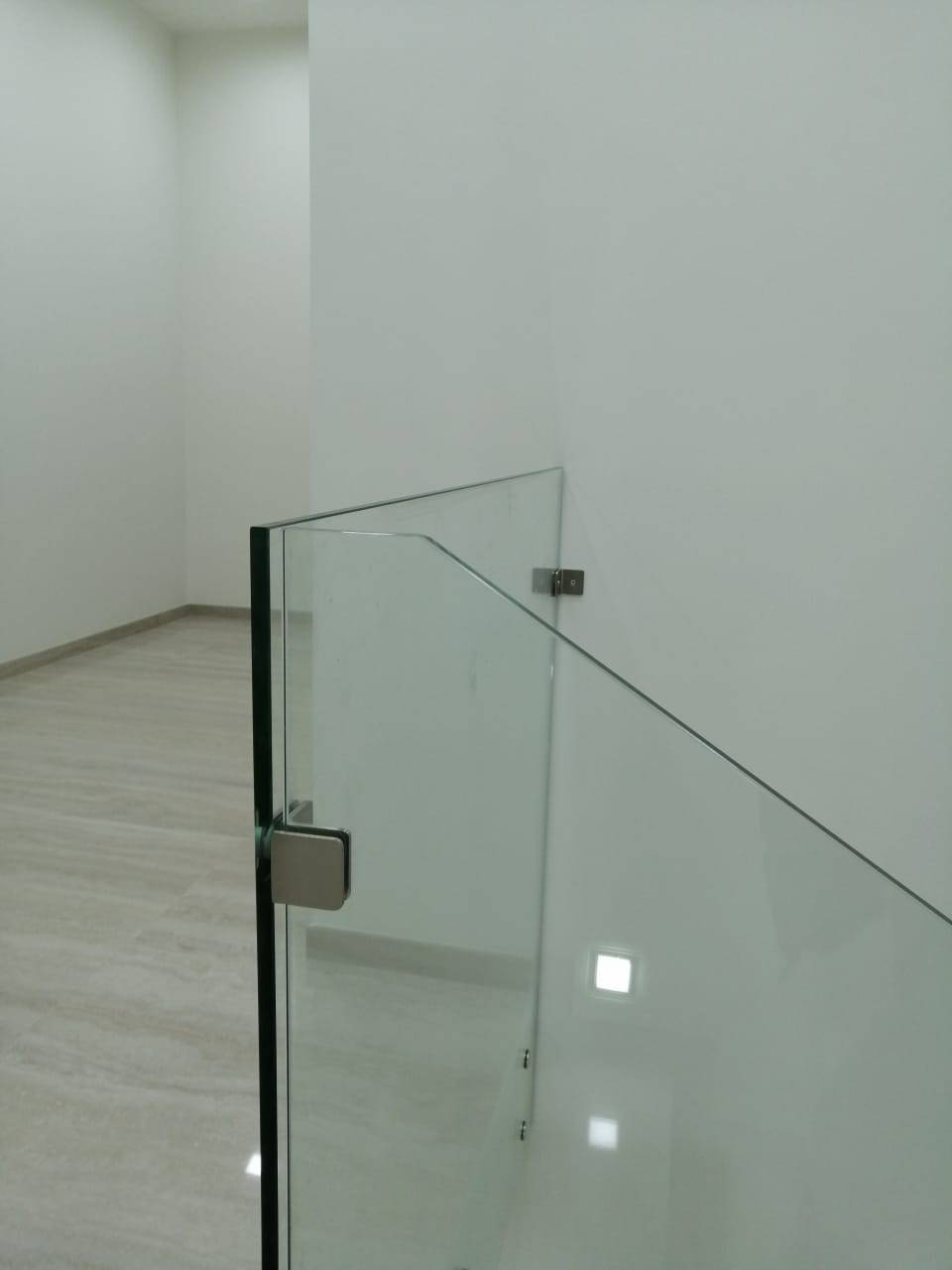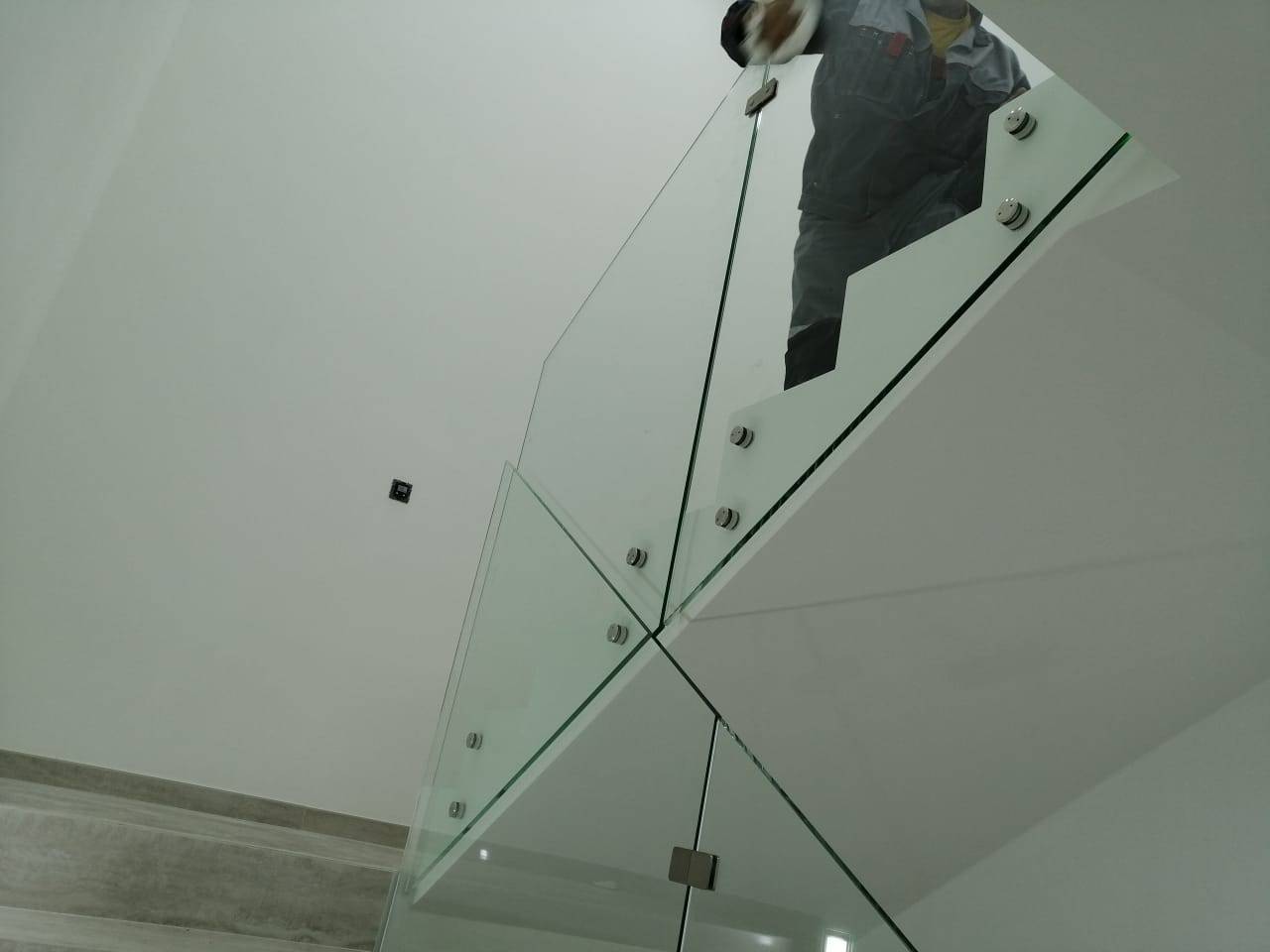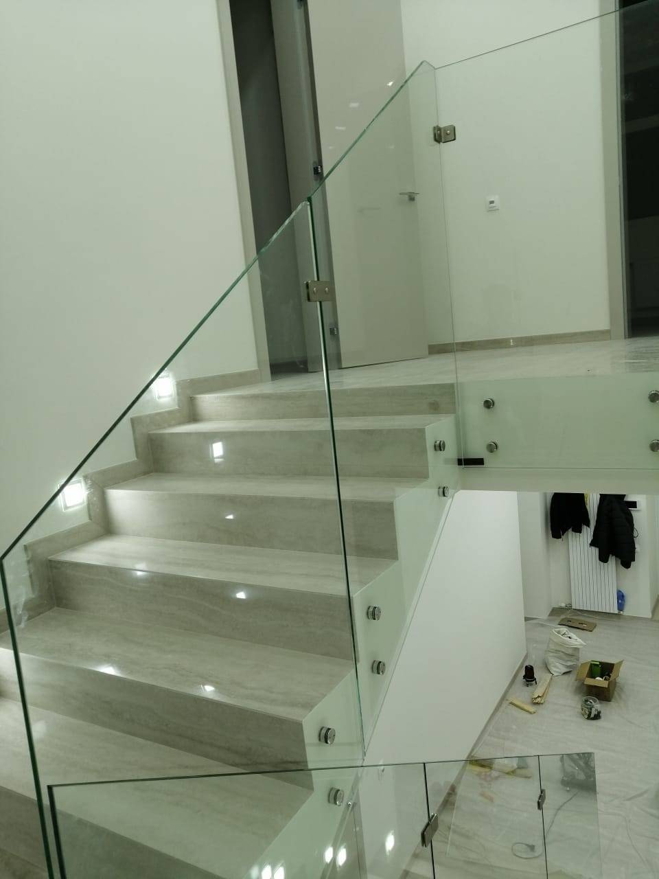 Мы предложили оформить стеклянными ограждениями загородный коттедж нашего нового заказчика Владимира Викторовича. Частная постройка находится на территории КП Павлово-2 по Новорижскому шоссе. В планах у владельца было установить ограждения для лестницы на второй этаж. Кованые металлические конструкции для этой задачи не подходили. Деревянные элементы тоже «нагружали» интерьер. Поэтому, было решено использовать: