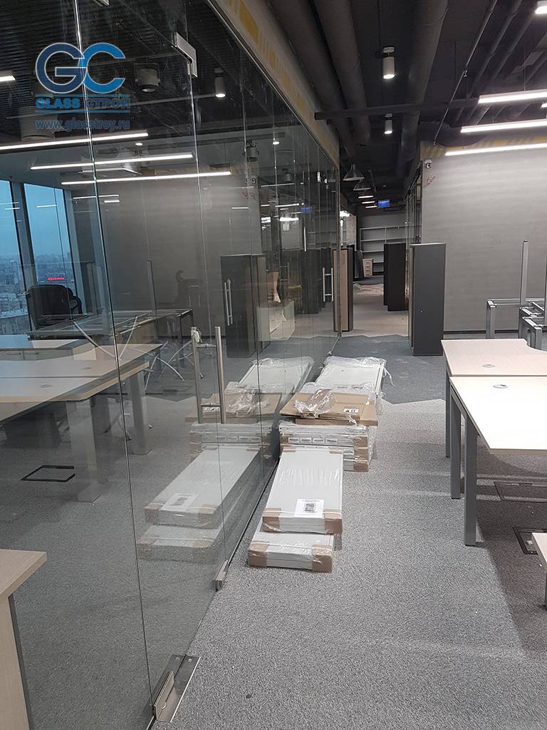 Комплекты для стеклянных перестенков между офисными кабинетами были спроектированы в количестве 33-х наборов. Для изготовления такой продукции в цехах использовалось калёное стекло с толщиной кромки в 10 мм. Мастера выдержали все замеры согласно утверждённому Техническому заданию.