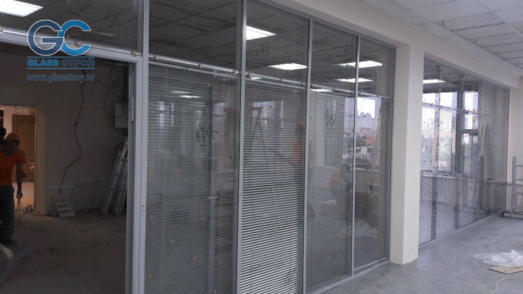 − «Наша строительная компания взялась за реконструкцию центра по государственной программе. Поэтому потребовался экономный и функциональный проект новой планировки. Для решения такого вопроса мы и решили обратиться к нашим „старым“ коллегам – в компанию „Гласстрой“», − рассказывает прораб СК. – «Обязательным условием центра стала возможность полной конфиденциальности в кабинетах. Поэтому мы согласились на вариант с межрамными жалюзи. А вопрос с высокими потолками решили с помощью разных конструкций перегородок. Нам посоветовали одинарные стёкла использовать в верхней части (выше среднего роста), а двойное остекление устанавливать до уровня в 2,0 м».