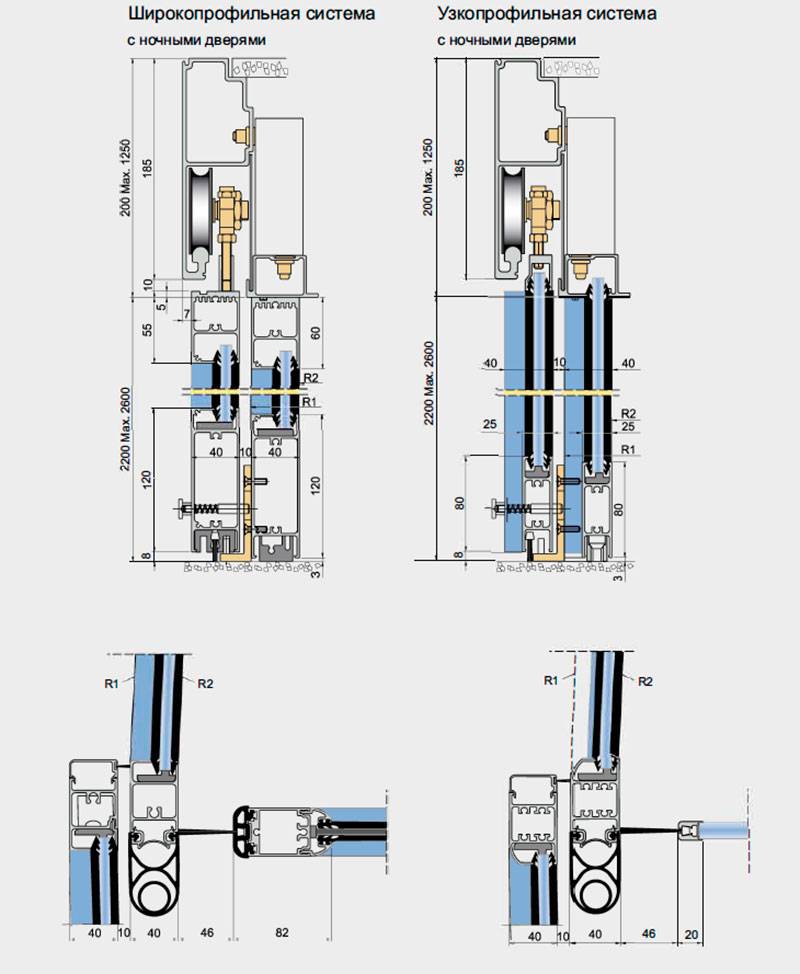 - Импосты на створках и неподвижной части Дополнительные датчики безопасности на вращающейся части