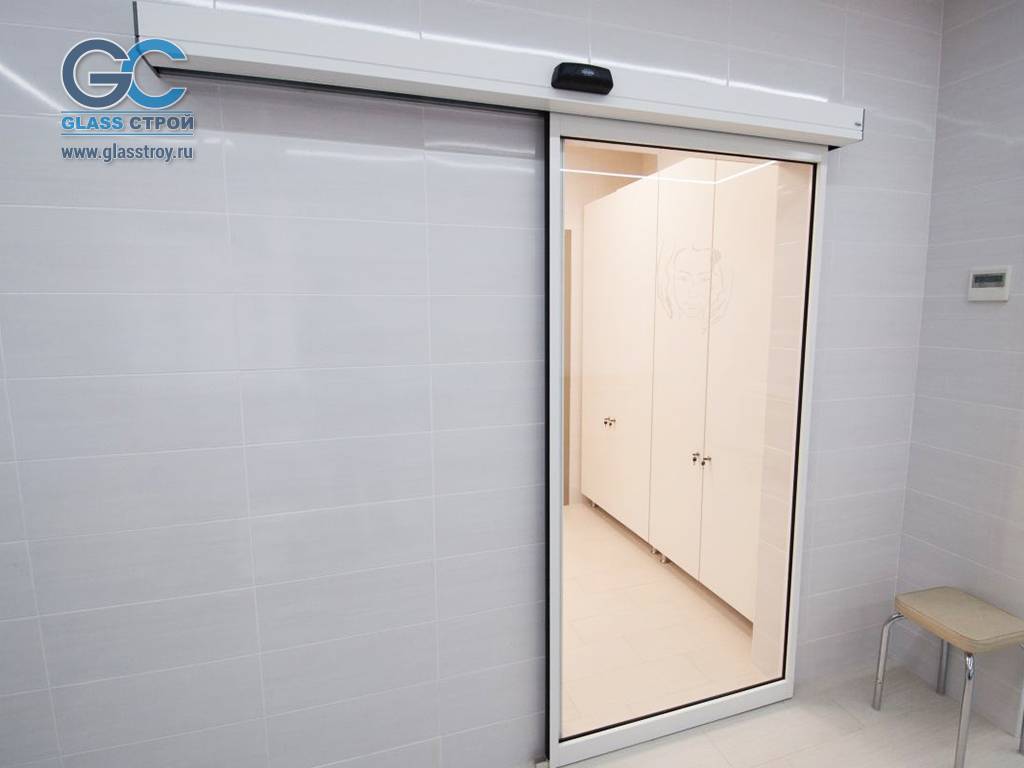 Раздвижная автоматическая дверь из целого стеклянного полотна - это один из самых распространенных видов автоматических дверей.