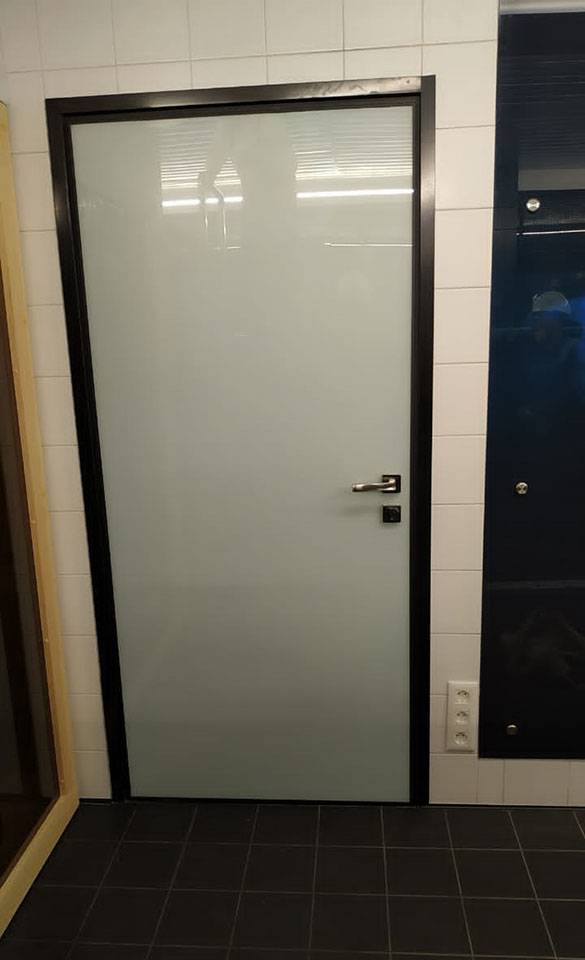 Дверь повышенной звукоизоляции Premium класса, толщиной 72 мм с двойным контуром уплотнения, с двойным опускным порожком обеспечивает максимальную степень звукоизоляции при установке данной двери в перегородки Glasstroy. В дверь устанавливается безопасное двойное остекление из закаленного прозрачного стекла, марки М1.