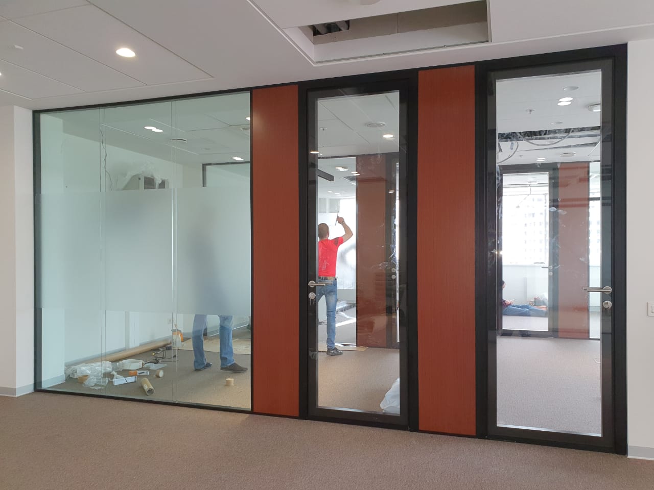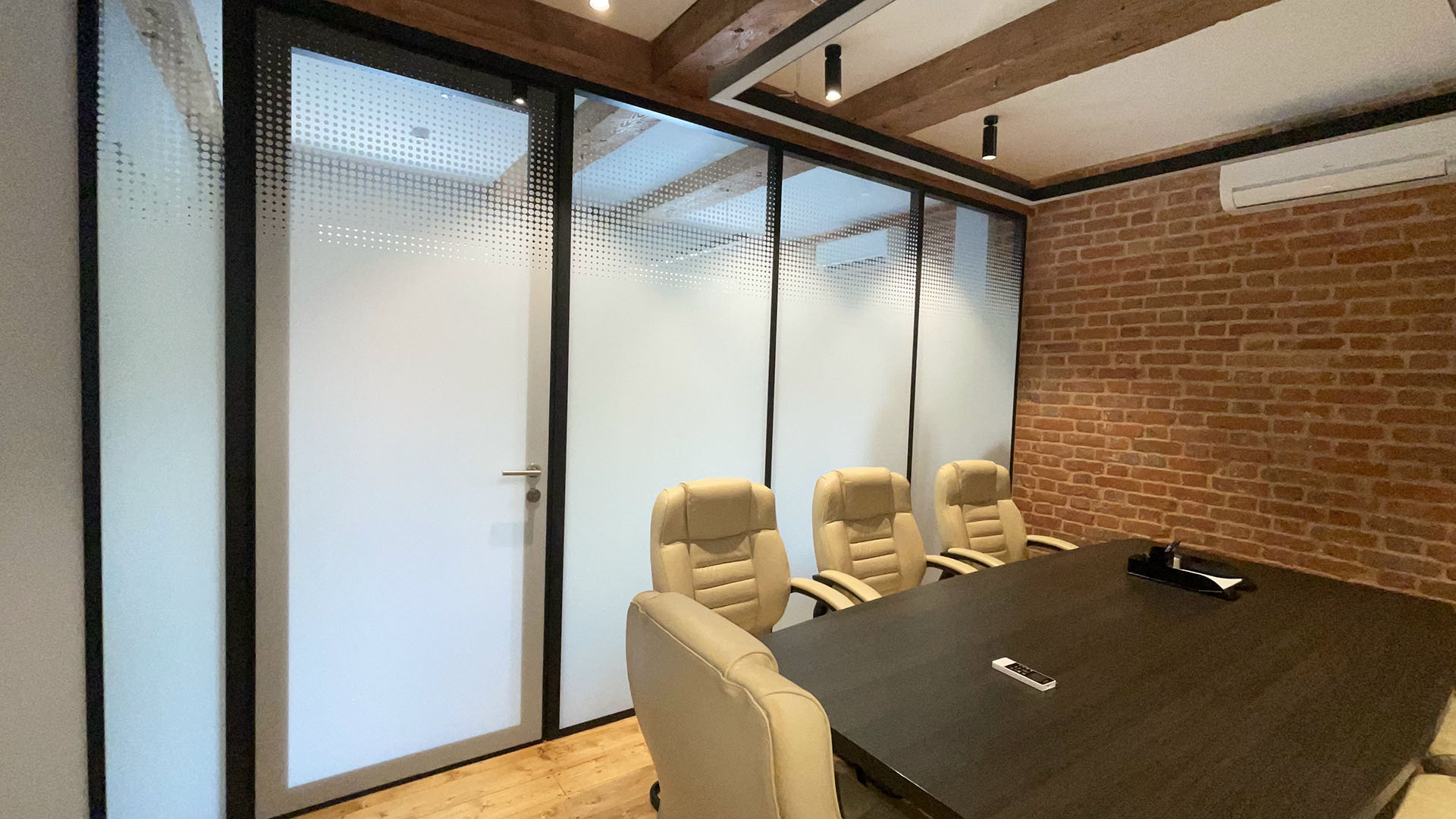 - Перегородки Concept двойное стекло 10мм. цвет RAL 7021 муар. - 6 870 р. / м.кв.