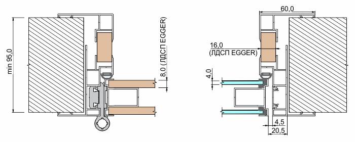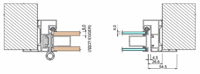 Ниже, приведены конструктивные сечения установки полотен серии Эстет в различные типы рам и интерьерных систем, а также в строительные проёмы.