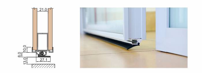 В качестве дополнительной опции, возможна установка под полотном опускающегося порога.
