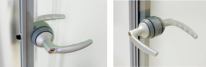 Базовый комплект фурнитуры состоит из замка с ручкой (цвет - «серебристый алюминий»).