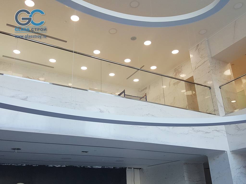 Установка цельностеклянных ограждений на вертикальных стойках из нержавеющей стали с зажимами для стекла