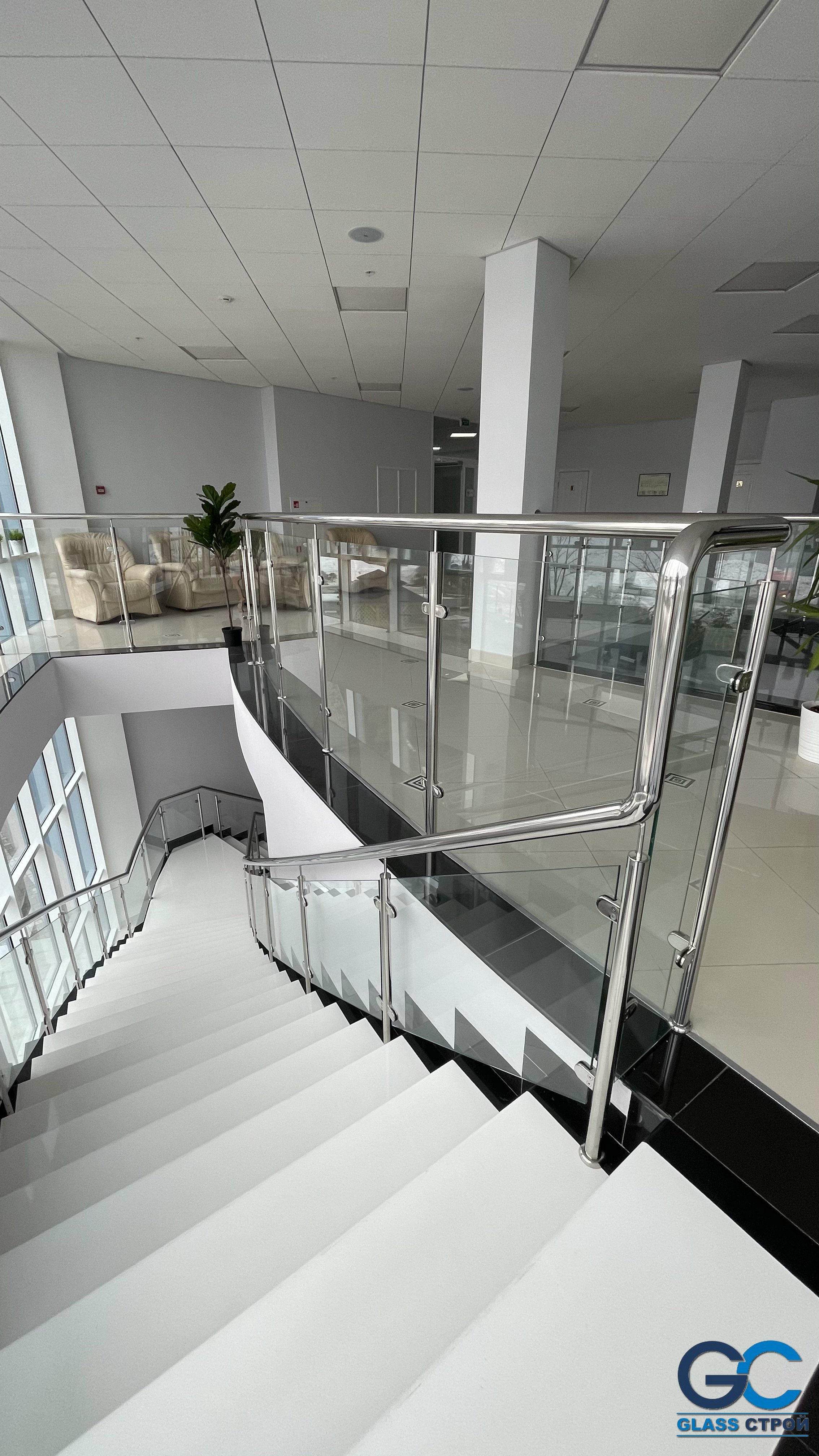 Лестничные ограждения из цельного стекла: это прозрачные ограждающие конструкции, которые являются такими же безопасными и функциональными, как и лестничные ограждения из нержавеющей стали или дерева. Обладают такие ограждения повышенной светопроницаемостью, за счёт этого значительно расширяя и не утяжеляя пространство, в котором они установлены.