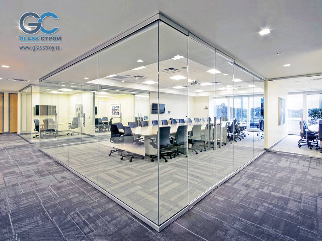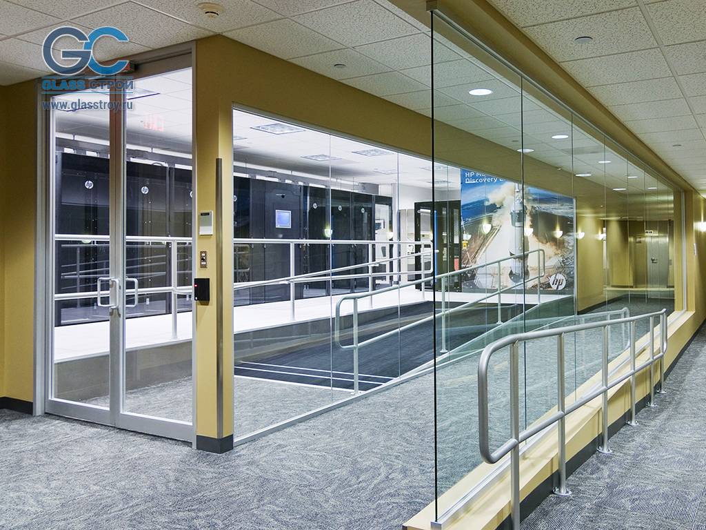 Варианты раздвижных дверей в цельностеклянных перегородках