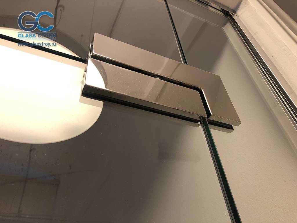 - При установке цельностеклянной двери в цельностеклянную перегородку, используется два вида дверных зажимных коробок: для цельностеклянного полотна толщиной 8мм, либо для любого дверного полотна, толщиной 40мм, как глухого, так и остеклённого. Зажимная коробка закрепляется непосредственно на закалённое стекло цельностеклянной перегородки.