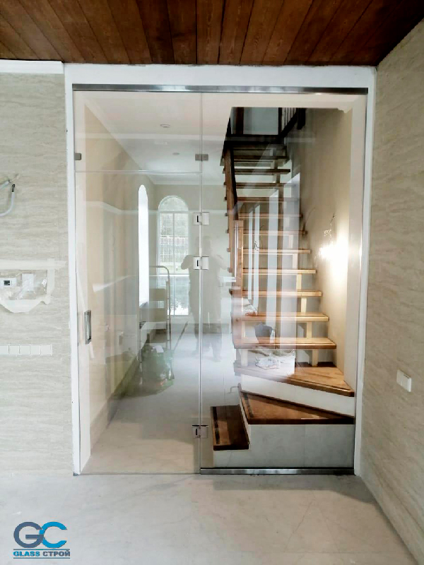 Возможно установить раздвижные двери и на цельностеклянную перегородку.