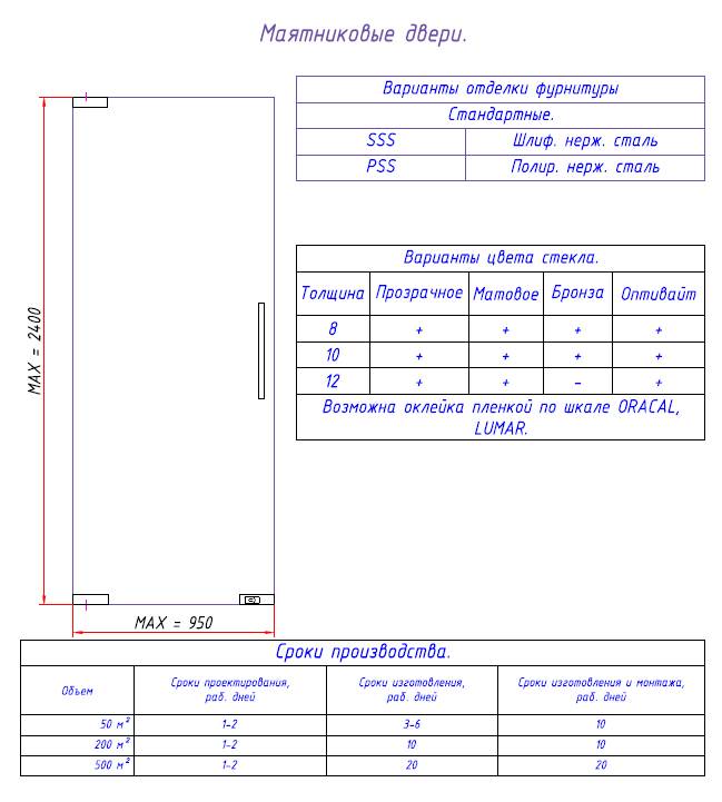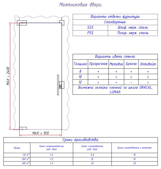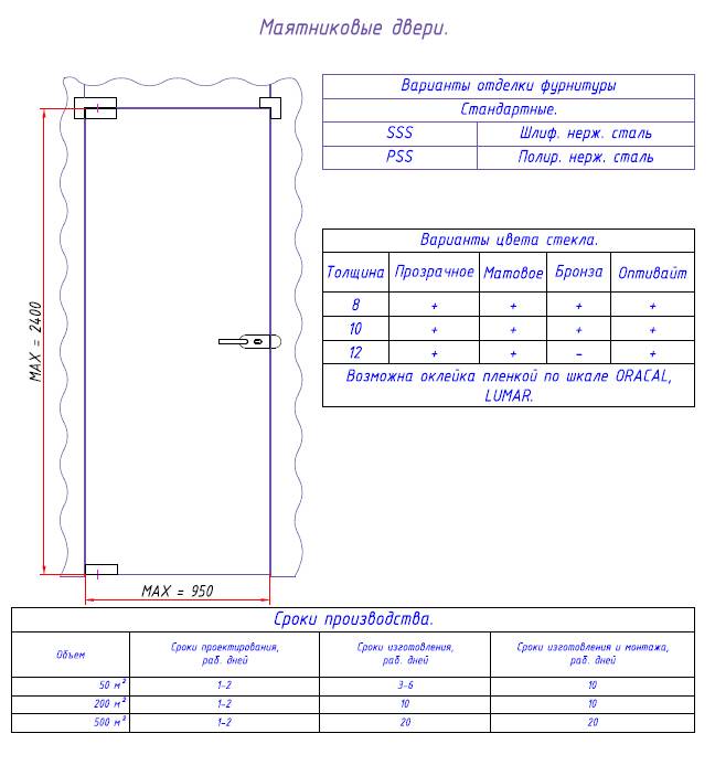 При производстве маятниковых дверей Ultra slim применяется полотно толщиной 8, 10 и 12 мм. Применяются двери такого типа в следующих типах помещений: