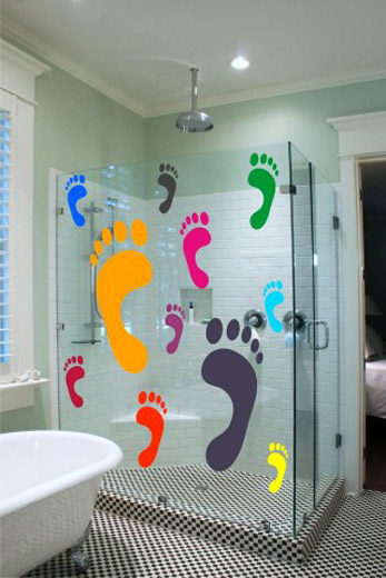 Рис. 2. Перегородка из стекла для душевой с рисунками, вырезанными из самоклеющейся пленки.