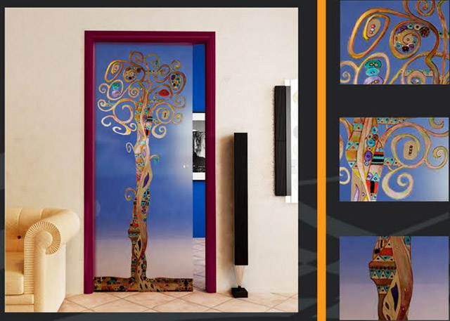 Рис. 5. Декорирование раздвижной стеклянной перегородки эксклюзивным рисунком, выполненным художником.