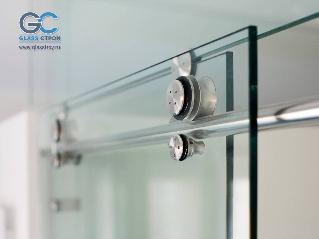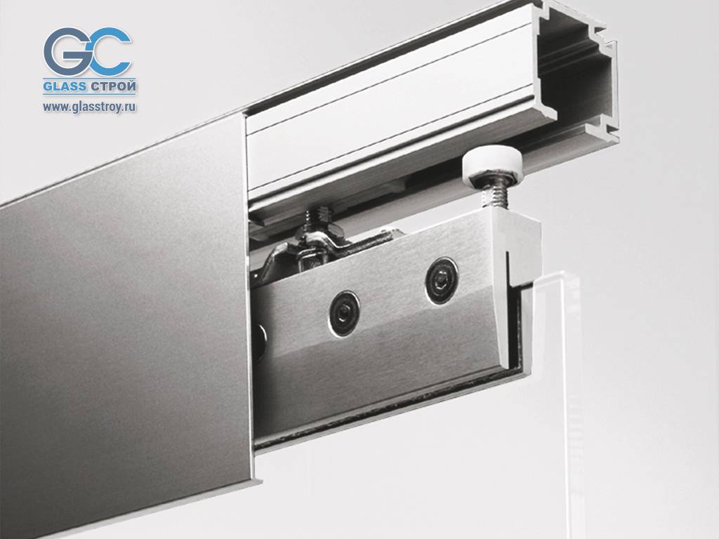 Элемент конструкции отвечает за удобство и длительность эксплуатации. Он крепится к полотну из стекла и вставляется в направляющую рельсу. Внутри направляющего рельса также вставляются стопоры для ограничения свободного хода полотна двери. Они нужны, чтобы дверь не вышла за пределы направляющего рельса. |