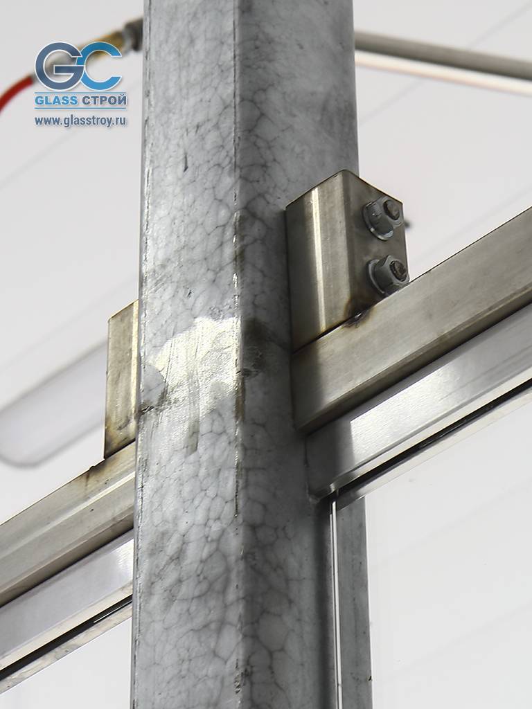 Для помещений с потолками выше 3,0 м рекомендуется профильная система со стенками в 10 мм. Конструкция фиксируется к основанию по типу предыдущих моделей. Рассчитывается под зажимной профиль для стекла 12 мм и высоту потолка в 4 -5 м.