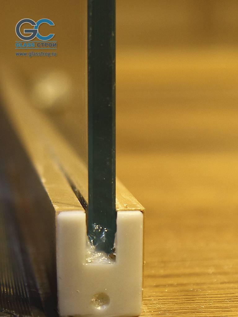 - Использовать профиль для стекла из алюминия. Кромка стекла будет зажата его боковыми стенками, что позволит стеклу прочно удерживаться длительное время.