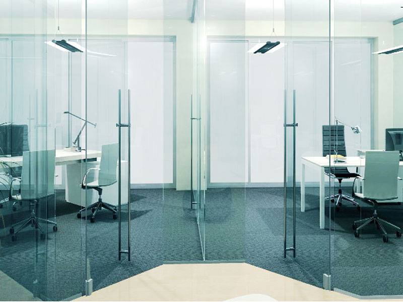 Предпочтение стеклянным дверям в офисы отдает огромное количество крупных компаний. Стеклянные двери визуально увеличивают пространство рабочих кабинетов и стимулируют офисных работников к более сосредоточенному труду, так как начальник теперь имеет возможность наблюдать за тем, как работают его подчиненные.
