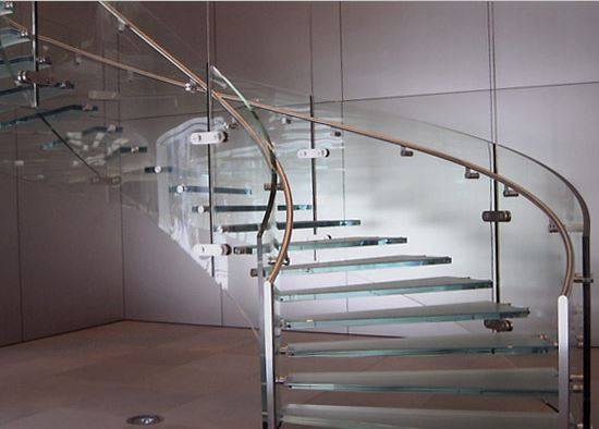 Второе название этого вида стекла – гнутое. Оно применяется не только для лестниц, но и для ограждений. Его преимущество – способность получить любую необходимую форму. Поэтому дизайнеры получают место для маневра. Хотя сегодняшние технологии производства позволяют выполнять любые пожелания заказчика не только в отношении моллированного стекла, но и в отношении двух других видов стекол. |