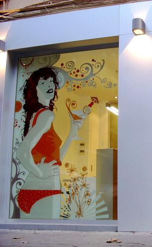 Рис. 2. Фотопечать в несколько слоев на стеклянной витрине магазина.