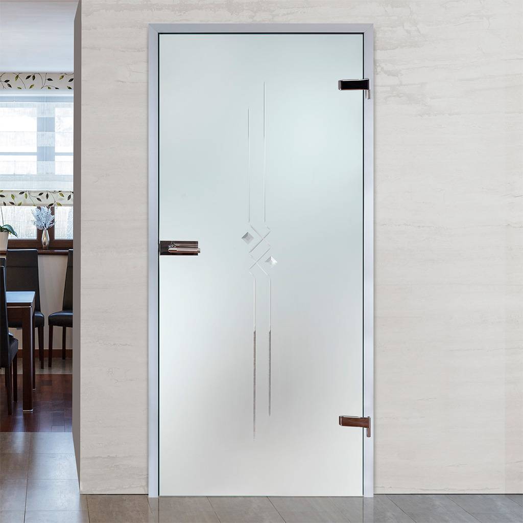 Среди преимуществ распашных дверей стоит отметить: надежность, отсутствие щелей, герметичность и большой выбор способов обработки стеклянного полотна.