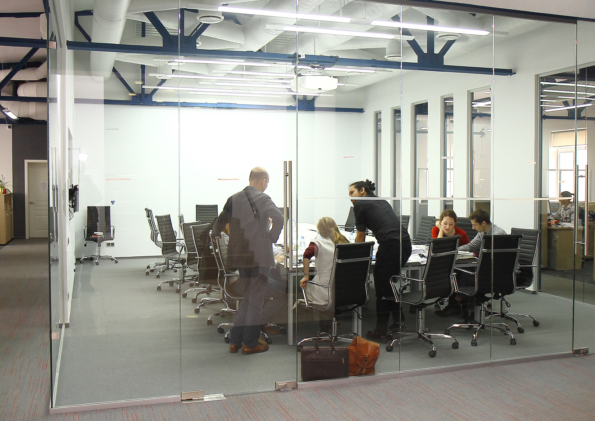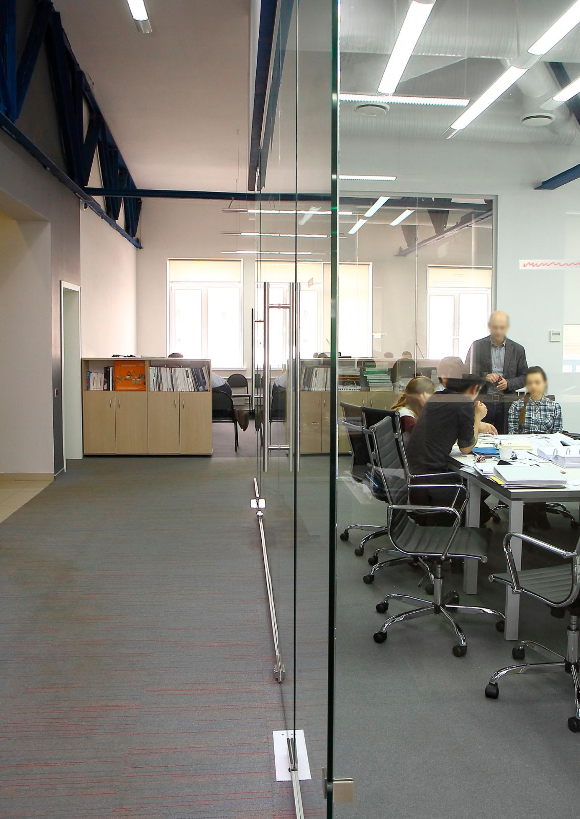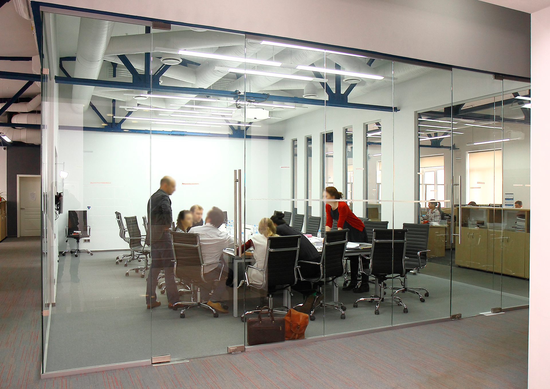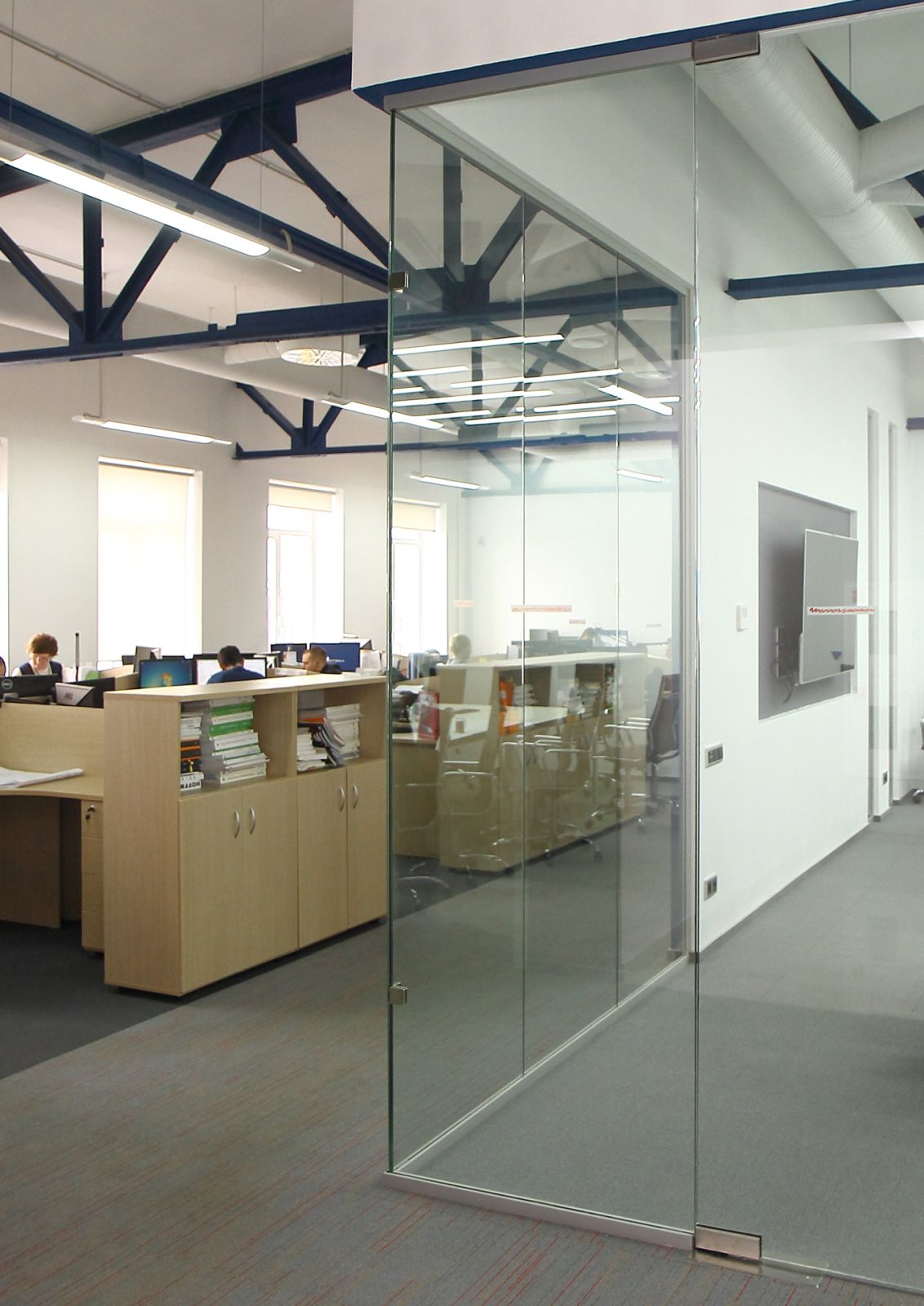 Перегородка и две двери из триплекса стандартная для помещения, офиса, бизнес-центра изготавливается из цельного стекла, триплекса, используется для зонирования, для организации рабочего места. Тип товара - дверь. Декорирование - прозрачные, матовые.