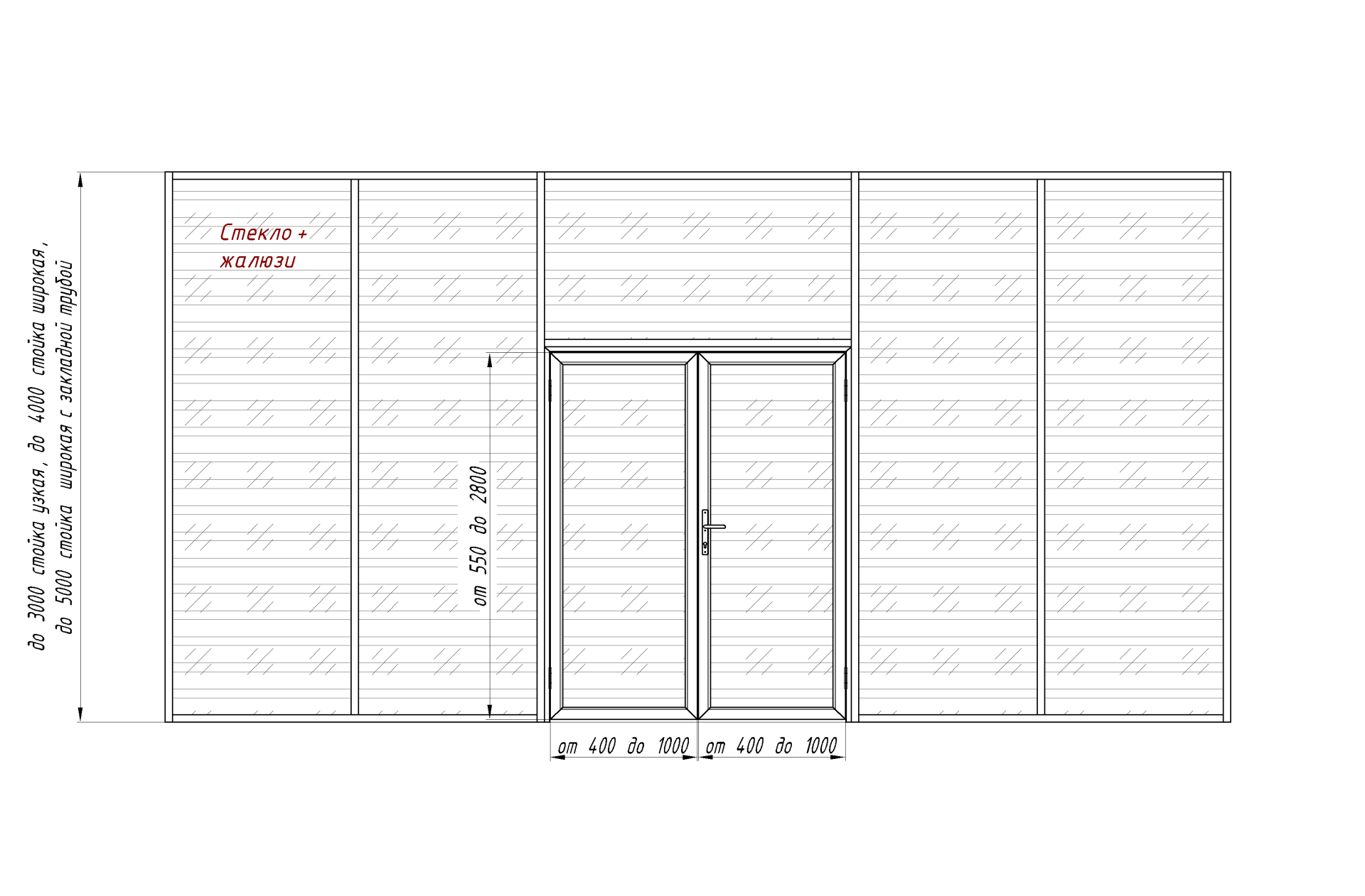 - Длина дверных рукояток: 450, 600, 800, 1000, 1200, 1500, 1800 мм