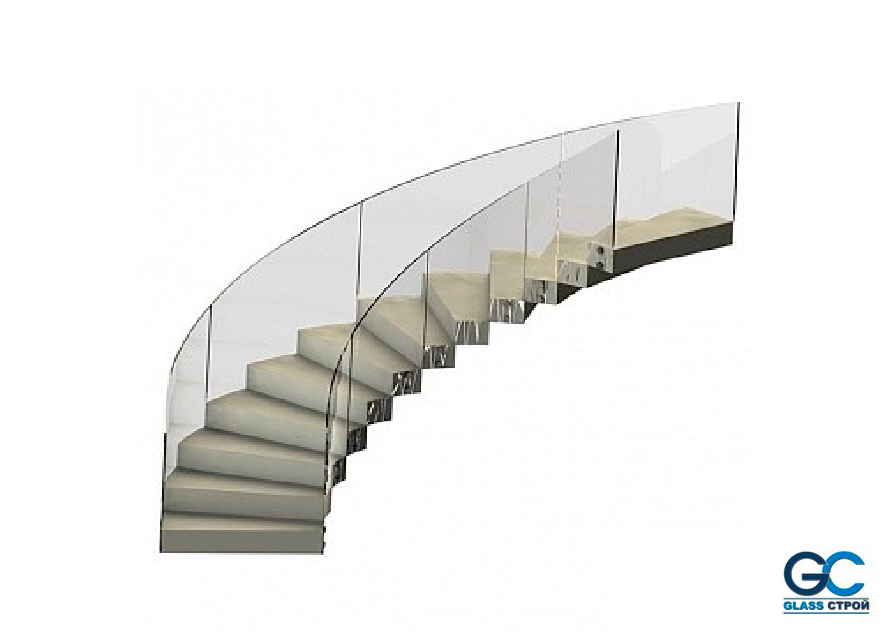 Ограждения изготовлены из термически закаленного стекла или многослойного каленого триплекса по дизайну заказчика с различными способами крепежа к ступеням лестничного марша.