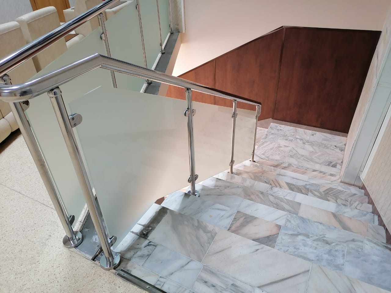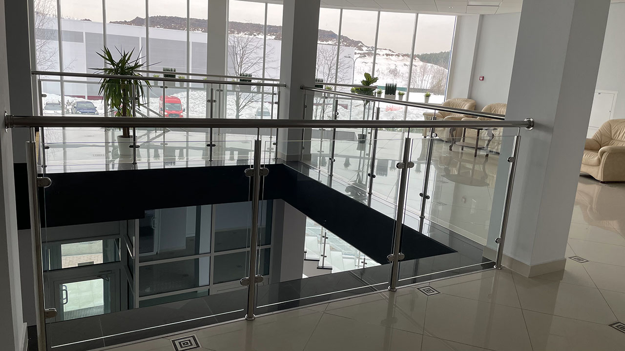 Выбирая этот тип перил потребитель приобретает: воздушность конструкции, максимальную прозрачность в помещении, температурную устойчивость, срок службы свыше 50 лет, отсутствие среды для микробов.