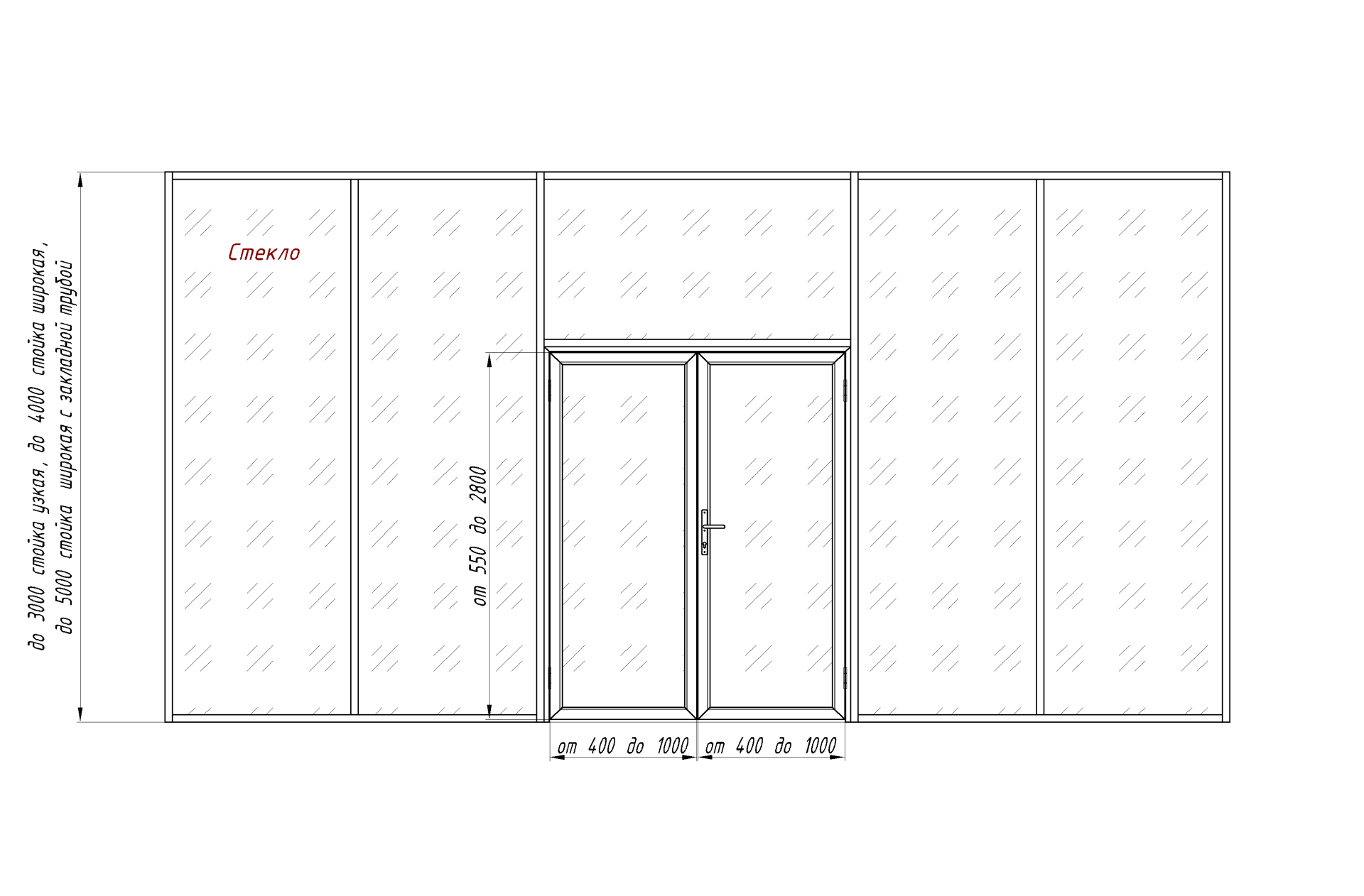 Перегородка каркасная с двустворчатой дверью одинарное остекление 5-10мм премиум-класса для торгового центра, кафе и ресторана, гостиницы, бизнес-центра производится из стекла, закаленного стекла, алюминия, применяется для зонирования, для регулирования приватности, для престижных интерьеров, для визуального простора. Тип товара - перегородка. Доступное оформление - матовые, осветленные OptiWhite, с химическим травлением.
