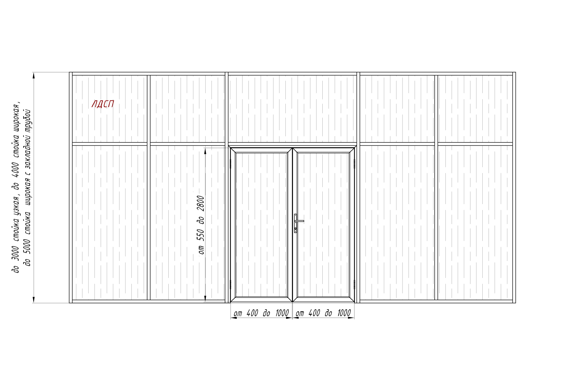 Каркасная входная группа с двустворчатой дверью трендовая для бутика, магазина, банка, салона красоты производится из стекла, стали, используется для звукоизоляции, для организации пространства, для престижных интерьеров, для общественных помещений. Тип товара - входная группа. Тип оформления - матовые, с пескоструйной обработкой.