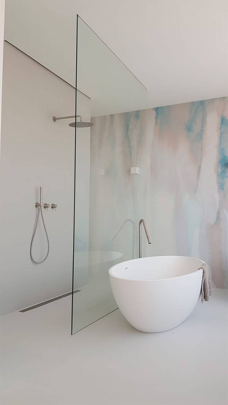 Цельностеклянные конструкции из стекла, выполненные по индивидуальному заказу, идеально смотрятся в интерьерах просторных ванных комнат.