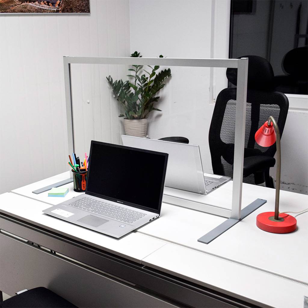 Такие перегородки в офисах, могут быть закреплены, как на столах, так и на полу между столами сотрудников, а также иметь различную высоту, как для чисто символического, так и вполне себе капитального разграничения рабочих мест с сохранением открытости общего пространства офиса.