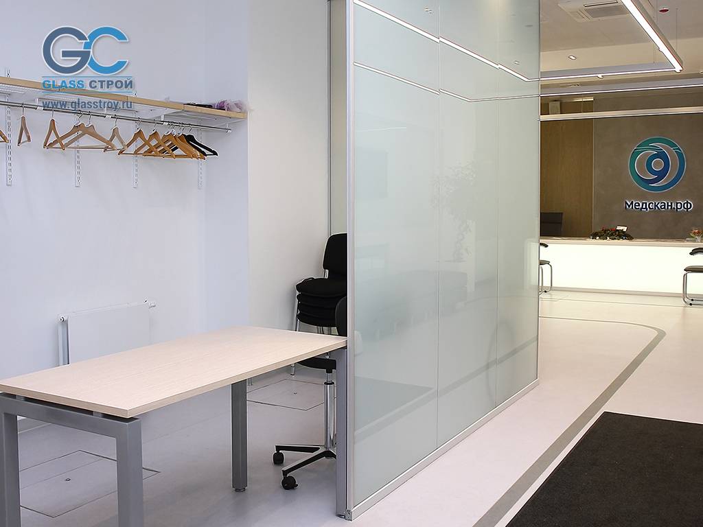 Кстати, прочностные характеристики закаленного стекла используются не только для жестко закрепленных, но и для раздвижных перегородок.