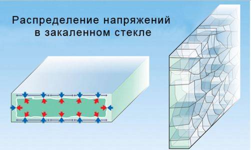 Закаленное стекло - это обычное листовое стекло, прошедшее специальную химическую и термическую обработку. Оно в несколько раз превосходит стандартное по механической прочности, а также более устойчиво к резким температурным перепадам. Производство осуществляется в специальных печах. Так как в качестве сырья можно взять листы любого стекла: полированного, матового, неполированного, тонированного, узорчатого. Сначала лист разогревают, чтобы он стал мягким, затем быстро равномерно охлаждают. Обработанное стекло после его изготовления нельзя резать, дополнительно обрабатывать и сверлить.