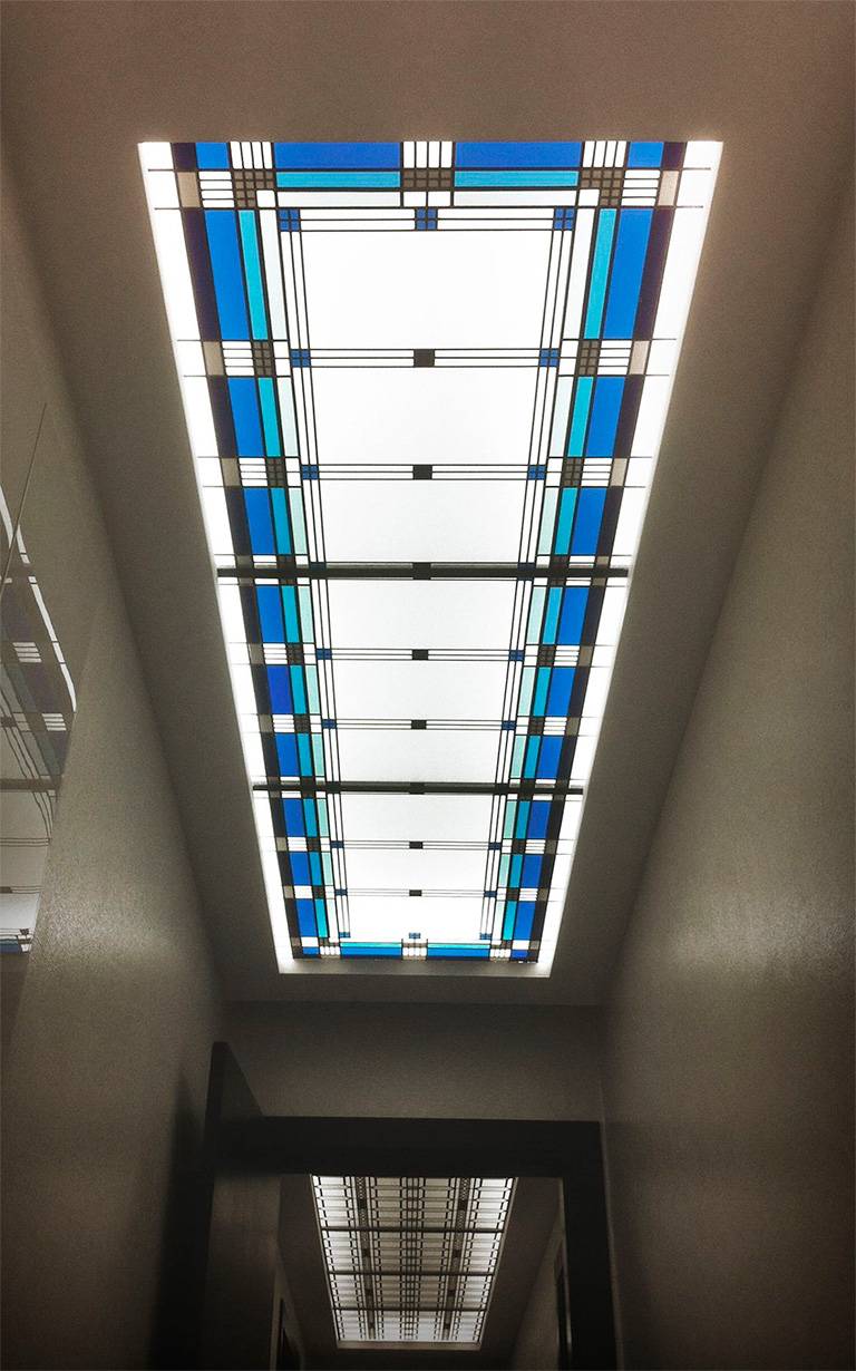 Потолочные навесные конструкции этого типа отличаются типом подвесной конструкции и используемым материалом. Витражи могут быть разнообразной формы - купол, плафон, прямоугольной, круглой и нестандартной. По технике рисунка и составления элементов витражные потолочные конструкции бывают классические, заливные, пленочные, пескоструйные, тиффани и с фотопечатью.
