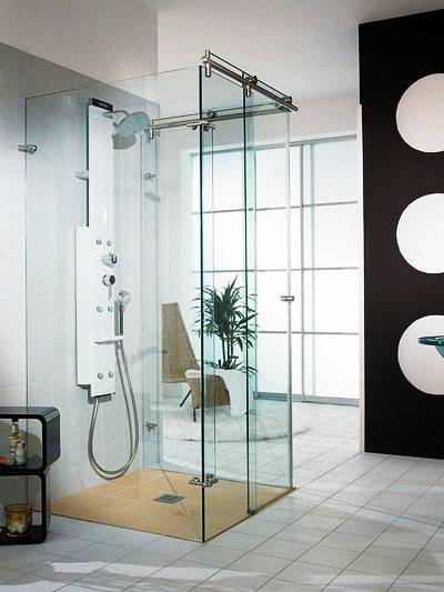 Остановимся и на таком важном элементе, как двери. Они бывают стандартными распашными и раздвижными. Лучший вариант, исходя из точки зрения удобства и практицизма, это раздвижные двери, так как они не скрадывают свободную территорию ванной комнаты. Как уже было сказано в начале статьи, душевая кабина также может оснащаться дополнительными функциями. К примеру: эффект паровой бани или инфракрасного обогрева.